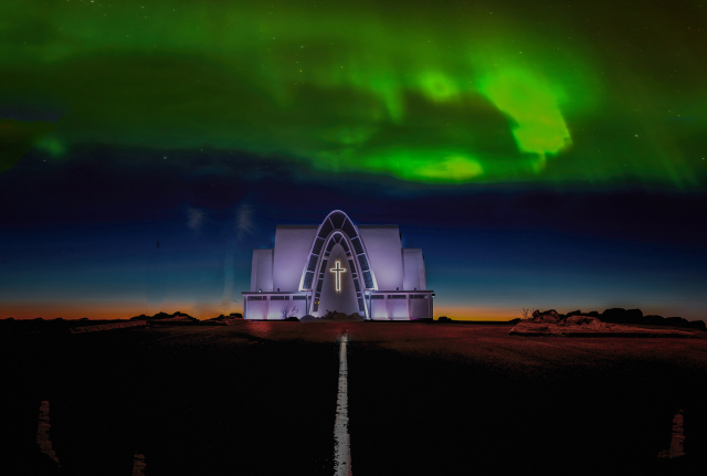 Hilltop Church And Northern Light
